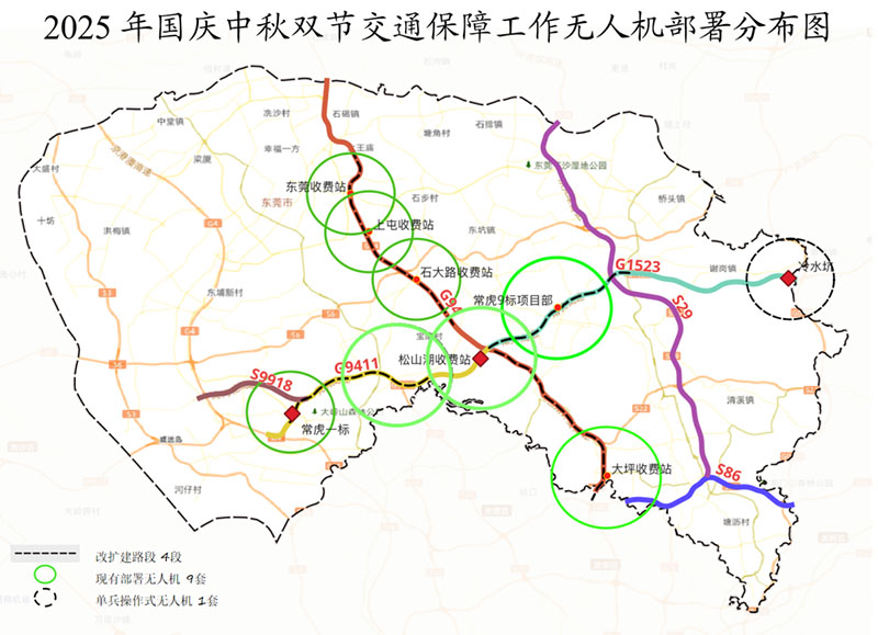 與往年不同的是,今年國慶中秋長假期間,東莞市低空經(jīng)濟發(fā)展有限公司(以下簡稱“低空經(jīng)濟公司”)在東莞交控集團的統(tǒng)籌安排下,以“機巢式無人機+單兵操作式無人機”協(xié)同作業(yè)模式,整合兩者優(yōu)勢,形成“定點駐守+靈活巡查”的立體作業(yè)體系,對重點交通堵點實現(xiàn)精準(zhǔn)覆蓋,與固定監(jiān)控相互補充構(gòu)建空地一體化動態(tài)監(jiān)控網(wǎng)絡(luò),為廣大市民出行的通暢與安全提供技術(shù)保障。